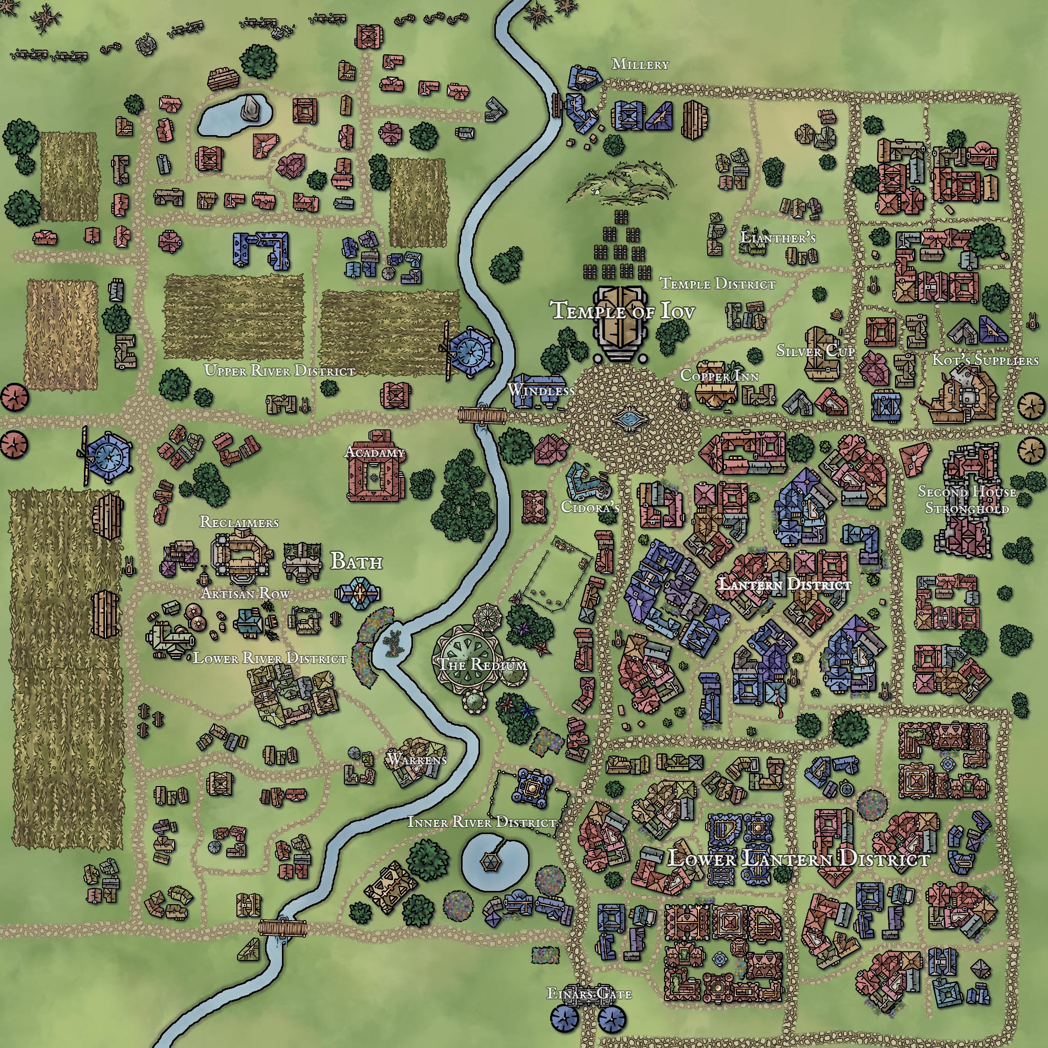 Harrowynd is a small but bustling and lively city south of the Malum Wode and north of the Lucidum Mountains. The city has nearly everything a traveler could have need of, including a well-stocked provisioner, blacksmith, and alchemical supply. Harrowynd boasts an Artisan Row where many makers and movers display and sell their wares, as well as the Lantern District, a boardwalk full of a diverse mix of food, drink, and revelry.